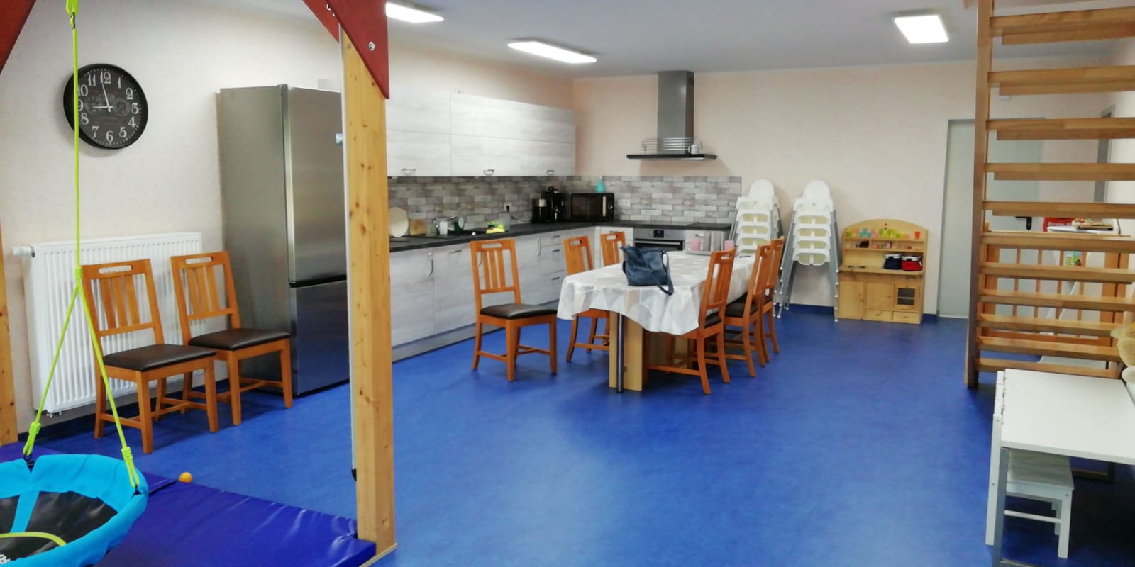 In der umgestatlteten Scheune ist ein schöner, großer Raum zum Essen und Spielen entstanden